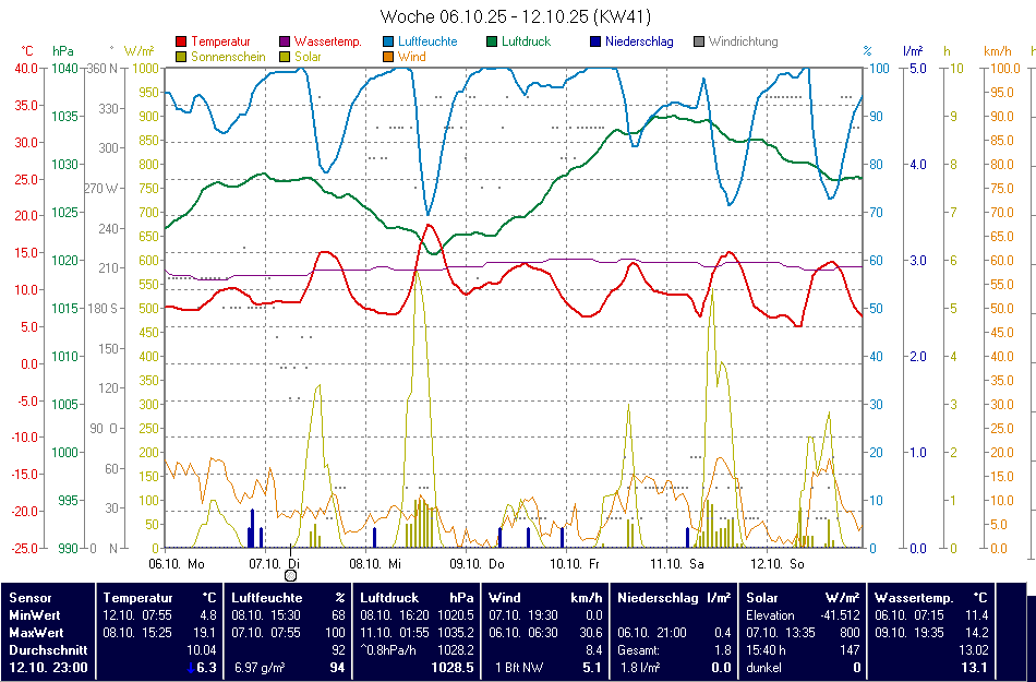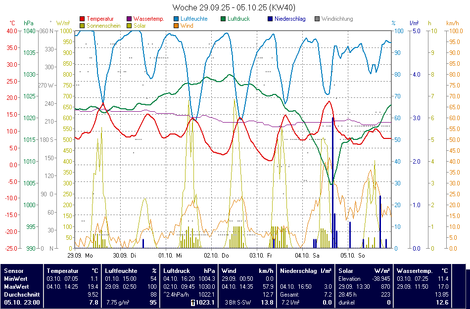 Allmendingen, Fichtenstraße526 m17:5512,39,8 (09:15)12,4 (17:40)0,0 l/m²81%1024,34,3 km/h (1 Bft) W-SW22,4 km/h (4 Bft) O-NO (13:15)