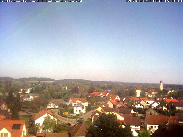 | Aldingen | 654 m | 16:46 | 19,9 | -0,5 (06:23) | 20,8 (14:43) | 0,0 l/m² | 24% | 1016,2 | 14,5 km/h (3 Bft) N | 20,9 km/h (4 Bft) W-NW (15:14) | | Allmannsweiler | 625 m | 16:46 | 21,2 | 1,4 (06:59) | 21,4 (16:33) | 0,0 l/m² | 34% | 1015,2 | 9,7 km/h (2 Bft) NO | 33,8 km/h (5 Bft) W (14:09) | | Allmendingen | 541 m | 16:45 | 22,9 | 0,5 (06:55) | 23,7 (16:10) | 0,0 l/m² | 26% | 1015,4 | 16,1 km/h (3 Bft) W-NW | 24,1 km/h (4 Bft) W-SW (14:45) | | Allmendingen, Fichtenstraße | 526 m | 16:50 | 20,5 | 1,7 (06:46) | 20,7 (16:15) | 0,0 l/m² | 33% | 1015,2 | 9,0 km/h (2 Bft) S-SO | 19,9 km/h (4 Bft) W-SW (13:55) | | Altshausen | 574 m | 16:45 | 22,9 | 0,8 (06:36) | 23,5 (15:32) | 0,0 l/m² | 26% | 1013,2 | 16,1 km/h (3 Bft) S-SW | 20,9 km/h (4 Bft) W-SW (15:47) | | Amriswil (CH) | 430 m | 16:45 | 22,4 | 2,1 (06:25) | 22,5 (15:54) | 0,0 l/m² | 37% | 1015,9 | 6,5 km/h (2 Bft) O-NO | 14,4 km/h (3 Bft) O (14:20) | | Amstetten-Reutti | 663 m | 16:45 | 19,6 | 1,8 (06:35) | 20,2 (15:10) | 0,0 l/m² | 30% | 1016,7 | 27,4 km/h (4 Bft) W-NW | 29,0 km/h (5 Bft) W (16:25) | | Amtzell | 564 m | 16:49 | 21,3 | -0,6 (06:40) | 21,7 (16:34) | 0,0 l/m² | 26% | 1017,9 | 20,9 km/h (4 Bft) S | 30,6 km/h (5 Bft) S (16:04) | | Amtzell-Grenis | 677 m | 16:45 | 20,7 | 4,6 (07:00) | 20,8 (16:40) | 0,0 l/m² | 14% | 1017,2 | 20,9 km/h (4 Bft) W-SW | 25,7 km/h (4 Bft) SW (14:55) | | Apfeltrach | 620 m | 16:46 | 21,2 | -0,4 (06:13) | 22,9 (14:42) | 0,0 l/m² | 31% | 1015,0 | 12,9 km/h (3 Bft) W | 20,9 km/h (4 Bft) N-NW (13:54) | | Aulendorf | 570 m | 16:45 | 22,8 | 1,4 (06:31) | 23,1 (16:12) | 0,0 l/m² | 27% | 1014,4 | 4,8 km/h (1 Bft) S-SW | 19,3 km/h (3 Bft) O-SO (14:42) | | Aulendorf, Steeger See | 548 m | 16:44 | 23,7 | -0,9 (06:25) | 23,9 (14:49) | 0,0 l/m² | 26% | 0,0 | 2,1 km/h (1 Bft) SW | 11,1 km/h (2 Bft) O (14:00) | | Bachhagel | 489 m | 16:48 | 20,9 | -0,7 (06:42) | 21,6 (15:29) | 0,0 l/m² | 31% | 1018,9 | 16,2 km/h (3 Bft) NW | 24,1 km/h (4 Bft) W (14:04) | | Bad Buchau, Adelindis Therme | 596 m | 16:49 | 21,7 | 1,1 (06:56) | 22,6 (16:27) | 0,0 l/m² | 28% | 1015,0 | 13,0 km/h (3 Bft) W-NW | 25,9 km/h (4 Bft) SW (14:26) | | Bad Krozingen | 233 m | 16:45 | 23,2 | 4,0 (06:55) | 23,4 (15:50) | 0,0 l/m² | 31% | 1017,1 | 15,6 km/h (3 Bft) NO | 19,0 km/h (3 Bft) NO (19:20) | | Bad Krozingen-Hausen | 199 m | 16:45 | 23,1 | 3,6 (06:30) | 23,8 (16:20) | 0,0 l/m² | 34% | 1016,7 | 12,8 km/h (3 Bft) N | 20,1 km/h (4 Bft) O-NO (16:25) | | Bad Krozingen-Schlatt | 214 m | 16:44 | 22,9 | 4,3 (06:34) | 23,0 (15:36) | 0,0 l/m² | 28% | 1016,5 | 20,2 km/h (4 Bft) NW | 20,2 km/h (4 Bft) W (16:43) | | Bad Krozingen-Schmidhofen | 252 m | 16:44 | 23,0 | 4,3 (05:41) | 23,4 (15:31) | 0,0 l/m² | 33% | 1018,6 | 11,2 km/h (2 Bft) NO | 18,4 km/h (3 Bft) S (15:47) | | Bad Krozingen-Tunsel | 229 m | 16:40 | 22,2 | 3,4 (05:10) | 23,2 (16:10) | 0,0 l/m² | 39% | 1016,7 | 18,7 km/h (3 Bft) O-NO | 22,1 km/h (4 Bft) O-NO (18:25) | | Bad Saulgau | 595 m | 16:48 | 25,6 | 1,2 (07:09) | 26,6 (15:29) | 0,0 l/m² | 23% | 1013,4 | 19,4 km/h (3 Bft) N-NO | 20,9 km/h (4 Bft) N-NW (16:41) | | Bad Saulgau, Mannsgrab | 588 m | 16:45 | 22,5 | -1,4 (06:43) | 22,6 (16:37) | 0,0 l/m² | 35% | 1016,0 | 19,4 km/h (3 Bft) N | 22,7 km/h (4 Bft) O-NO (13:43) | | Bad Saulgau-Lampertsweiler | 627 m | 16:48 | 23,1 | - (-) | 23,3 (01:00) | 0,0 l/m² | 31% | 1017,7 | 6,5 km/h (2 Bft) W | 22,7 km/h (4 Bft) O-NO (01:00) | | Bad Schussenried | 572 m | 16:45 | 25,0 | 1,8 (06:45) | 25,1 (16:35) | 0,0 l/m² | 31% | 1016,0 | 17,7 km/h (3 Bft) N | 22,5 km/h (4 Bft) S-SW (14:45) | | Bad Schussenried-Dunzenhausen | 590 m | 16:48 | 20,4 | 1,5 (06:10) | 20,7 (14:08) | 0,0 l/m² | 33% | 1016,0 | 7,9 km/h (2 Bft) O | 24,1 km/h (4 Bft) S (16:10) | | Bad Schussenried-Reichenbach | 635 m | 16:45 | 24,7 | 4,4 (06:20) | 24,7 (16:36) | 0,0 l/m² | 25% | 1015,7 | 13,0 km/h (3 Bft) NO | 24,1 km/h (4 Bft) W (14:13) | | Bad Schussenried-Steinhausen | 584 m | 16:48 | 21,7 | 0,1 (07:11) | 22,3 (16:06) | 0,0 l/m² | 29% | 1015,8 | 0,0 km/h (0 Bft) N | 17,7 km/h (3 Bft) NO (14:02) | | Bad Wurzach-Seibranz | 737 m | 16:45 | 19,6 | -0,7 (06:40) | 19,7 (16:03) | 0,0 l/m² | 33% | 1016,2 | 13,0 km/h (3 Bft) SW | 27,4 km/h (4 Bft) W (13:55) | | Badenweiler | 350 m | 16:44 | 22,2 | 6,1 (07:10) | 22,3 (16:05) | 0,0 l/m² | 27% | 1015,4 | 5,5 km/h (1 Bft) O | 23,0 km/h (4 Bft) O (13:21) | | Baindt | 462 m | 16:48 | 24,3 | 1,7 (06:51) | 24,5 (16:45) | 0,0 l/m² | 29% | 1016,4 | 11,3 km/h (2 Bft) S-SW | 22,7 km/h (4 Bft) S-SW (15:05) | | Balzheim-Unterbalzheim | 529 m | 16:43 | 22,3 | 1,4 (06:19) | 22,5 (16:02) | 0,0 l/m² | 29% | 1015,7 | 3,6 km/h (1 Bft) N | 13,0 km/h (3 Bft) S (12:56) | | Bergatreute | 615 m | 16:45 | 23,3 | 3,4 (05:20) | 23,3 (16:45) | 0,0 l/m² | 26% | 799,9 | 8,0 km/h (2 Bft) W-SW | 22,5 km/h (4 Bft) S-SW (15:15) | | Biberach (Riss), Boehringer | 533 m | 18:20 | 22,3 | 2,0 (08:30) | 23,0 (18:00) | 0,0 l/m² | 23% | 1017,4 | 9,4 km/h (2 Bft) N | 23,0 km/h (4 Bft) N (16:50) | | Biberach (Riss), Hölzle | 600 m | 16:49 | 23,1 | 2,4 (06:56) | 23,1 (16:47) | 0,0 l/m² | 25% | 1017,1 | 13,0 km/h (3 Bft) SO | 22,7 km/h (4 Bft) O-SO (14:33) | | Biberach (Riss), Wolfental | 547 m | 16:46 | 23,5 | -1,6 (06:48) | 23,5 (16:45) | 0,0 l/m² | 30% | 1016,7 | 6,8 km/h (2 Bft) O-NO | 16,9 km/h (3 Bft) NO (15:07) | | Biberach-Mettenberg | 605 m | 16:46 | 22,9 | 2,5 (06:39) | 23,8 (16:39) | 0,0 l/m² | 26% | 1011,9 | 14,4 km/h (3 Bft) W | 17,7 km/h (3 Bft) N (13:27) | | Biberach-Rissegg | 585 m | 16:49 | 20,8 | 0,9 (06:48) | 20,9 (15:43) | 0,0 l/m² | 30% | 1016,7 | 16,2 km/h (3 Bft) W-NW | 22,7 km/h (4 Bft) W (14:59) | | Biberach-Stafflangen | 594 m | 16:47 | 23,0 | 1,6 (06:46) | 23,3 (15:27) | 0,0 l/m² | 26% | 1019,2 | 13,7 km/h (3 Bft) S-SW | 18,7 km/h (3 Bft) W (13:32) | | Burgrieden | 523 m | 16:45 | 23,7 | 1,2 (06:05) | 23,9 (15:40) | 0,0 l/m² | 31% | 1014,9 | 0,0 km/h (0 Bft) W | 16,1 km/h (3 Bft) N (13:25) | | Burgrieden-Hochstetten | 510 m | 16:45 | 21,7 | -0,1 (06:20) | 22,4 (16