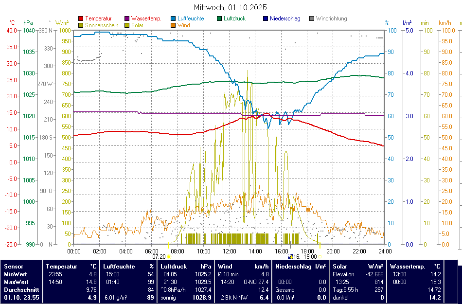 Eberhardzell-Mühlhausen612 m22:155,72,3 (06:14)12,7 (15:54)0,0 l/m²79%1028,47,9 km/h (2 Bft) N27,4 km/h (4 Bft) N (13:38)