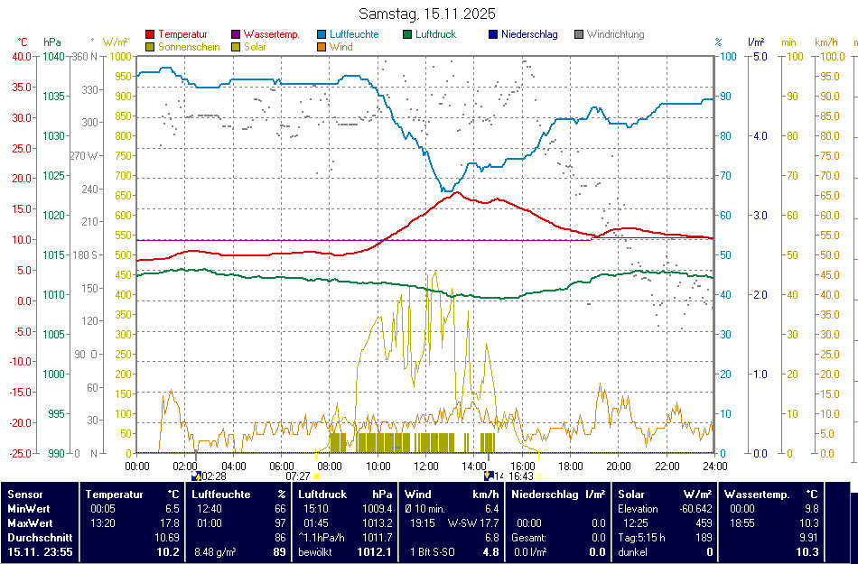 | 16.11.2025 | Höhe ü. NN | Zeit | Temperatur (°C) | Nieder- schlag | Luft- feuchte | Luft- druck | Wind |