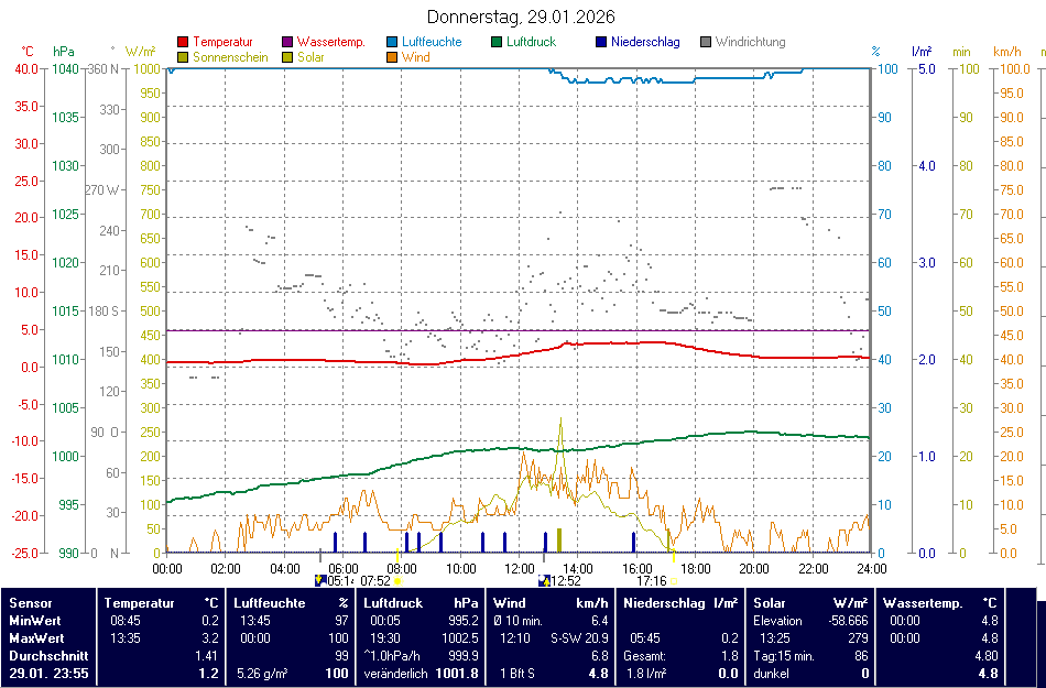 | 30.01.2026 | Höhe ü. NN | Zeit | Temperatur (°C) | Nieder- schlag | Luft- feuchte | Luft- druck | Wind |