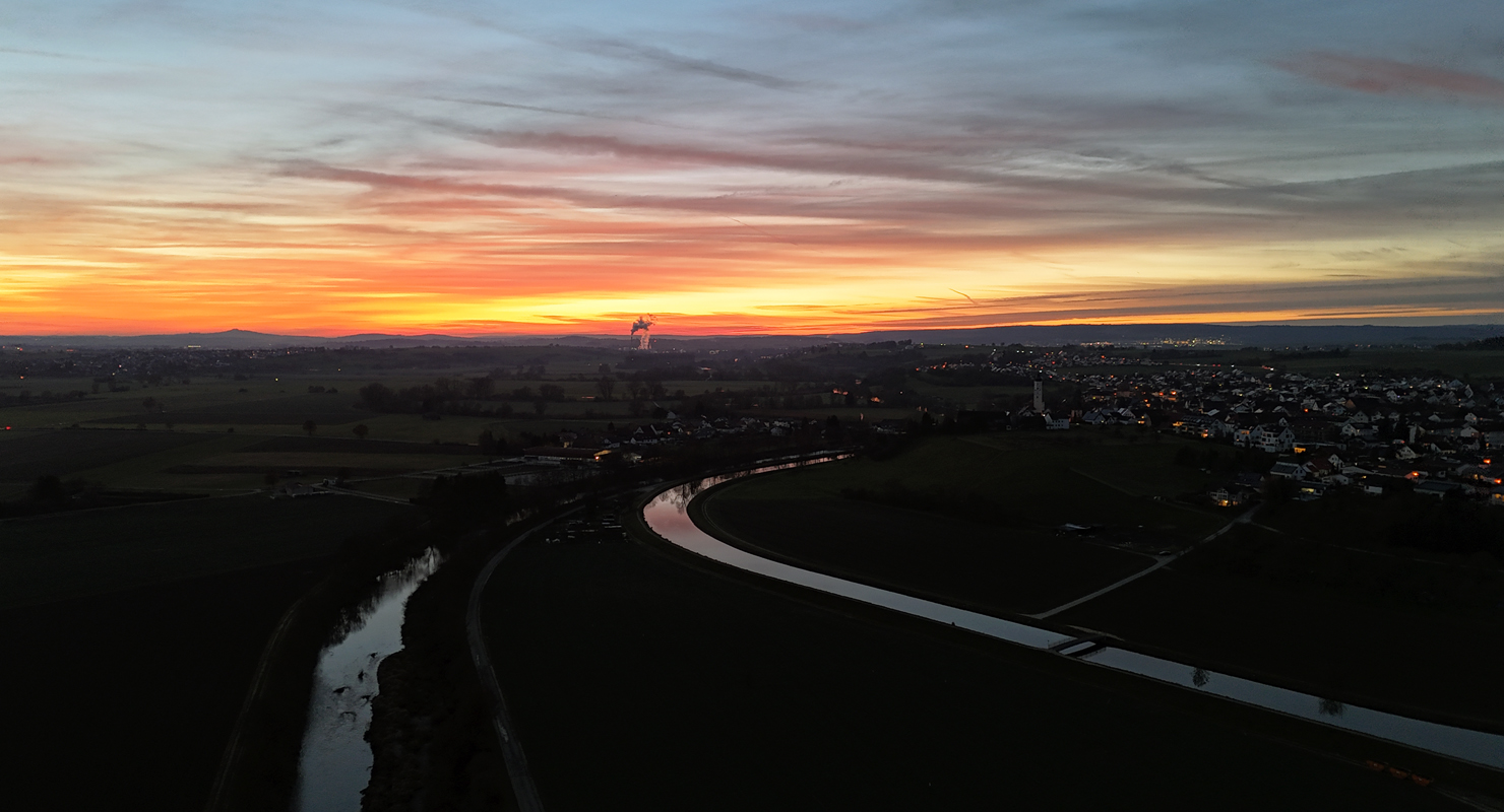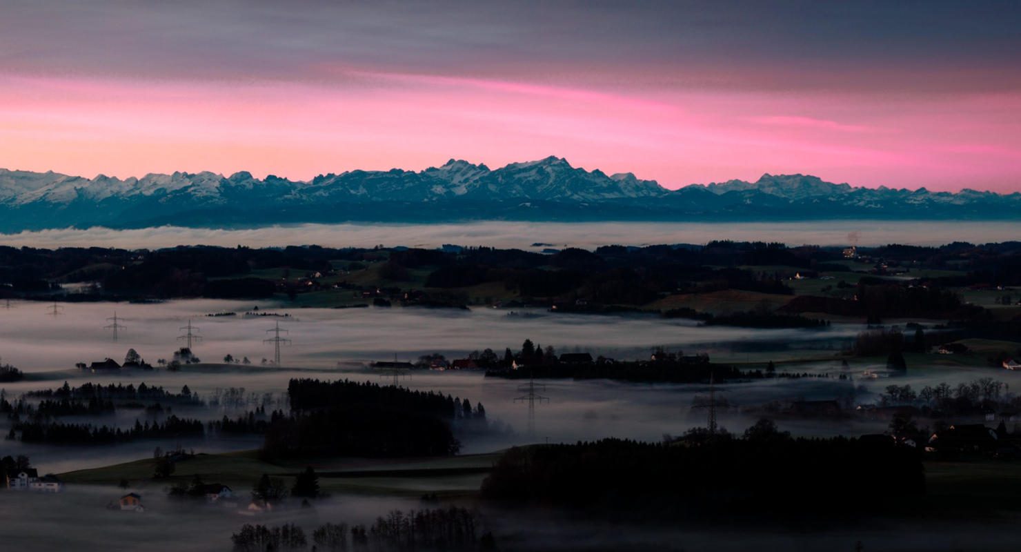 Morgendämmerung über dem Säntismassiv, Drohnenaufnahme östlich Matzenweiler
