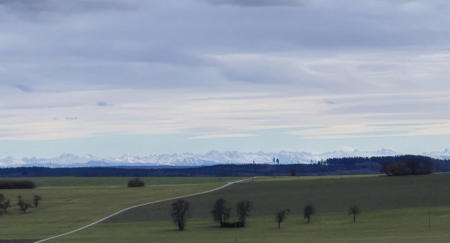 Fernsicht über das Ehinger Donautal auf die Alpen