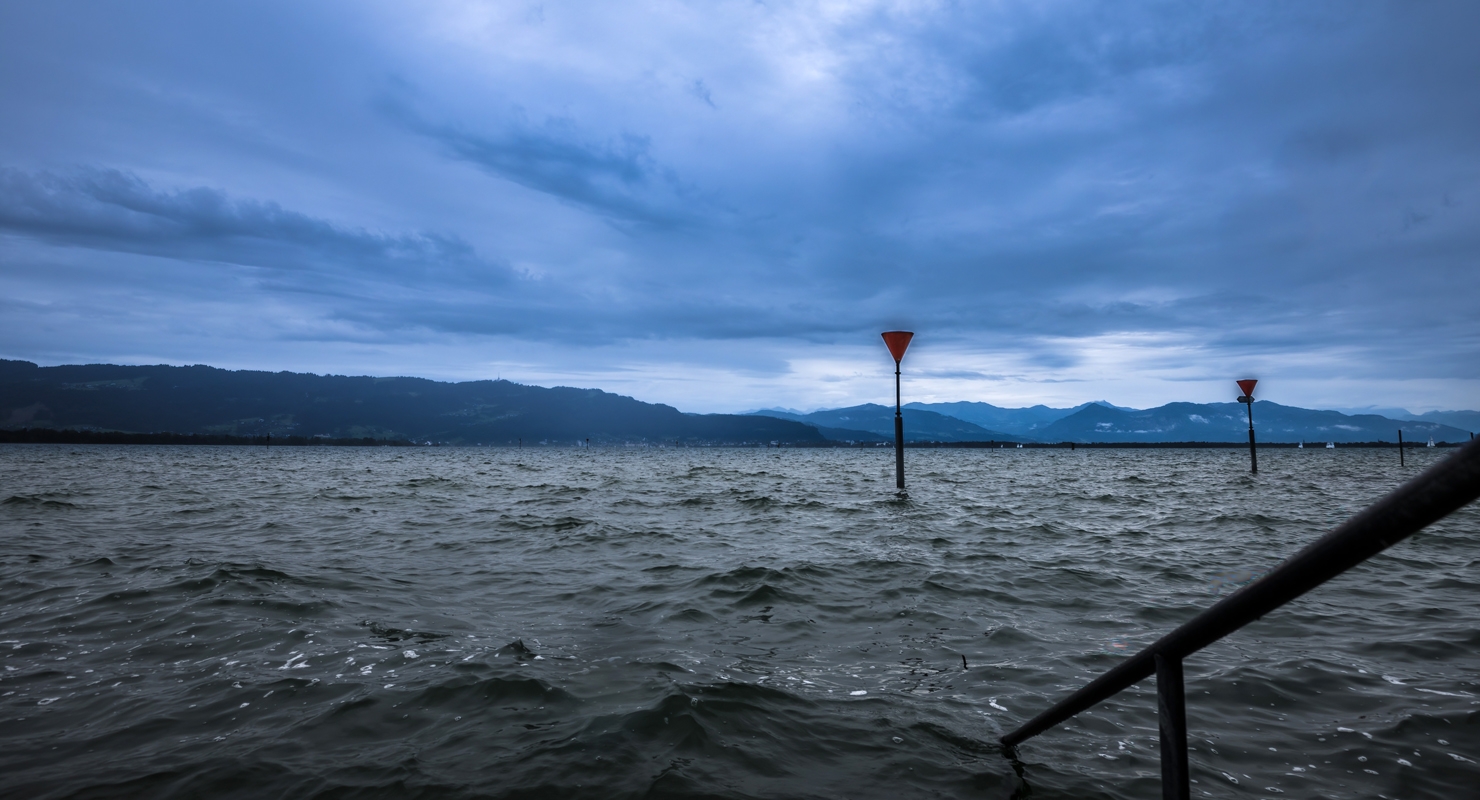 Blick von Lindau über die Bregenzer Bucht zum Pfänder