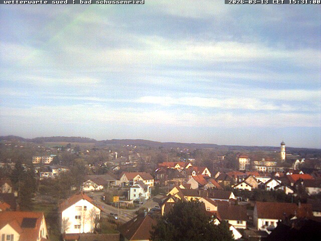| Aldingen | 654 m | 12:01 | 8,8 | 4,4 (06:47) | 9,0 (13:00) | 3,2 l/m² | 65% | 1024,3 | 3,2 km/h (1 Bft) SW | 27,4 km/h (4 Bft) W (14:34) | | Allmannsweiler | 625 m | 12:08 | 10,1 | 5,9 (07:29) | 10,1 (12:06) | 0,0 l/m² | 80% | 1023,6 | 13,0 km/h (3 Bft) W | 22,7 km/h (4 Bft) W-NW (01:09) | | Allmendingen | 541 m | 12:05 | 10,2 | 6,3 (06:40) | 10,8 (13:40) | 1,3 l/m² | 58% | 1023,9 | 9,7 km/h (2 Bft) SW | 32,2 km/h (5 Bft) SW (13:10) | | Allmendingen, Fichtenstraße | 526 m | 12:10 | 9,8 | 6,7 (08:11) | 9,8 (12:10) | 1,4 l/m² | 65% | 1023,2 | 5,6 km/h (2 Bft) S-SW | 9,4 km/h (2 Bft) W-SW (10:16) | | Altshausen | 574 m | 12:05 | 9,7 | 5,5 (06:17) | 10,1 (11:47) | 3,6 l/m² | 64% | 1022,3 | 12,9 km/h (3 Bft) S-SW | 20,9 km/h (4 Bft) W-SW (00:24) | | Amriswil (CH) | 430 m | 12:07 | 9,2 | 6,9 (06:30) | 9,3 (11:59) | 11,2 l/m² | 86% | 1025,4 | 0,0 km/h (0 Bft) NW | 28,8 km/h (5 Bft) NW (00:59) | | Amstetten-Reutti | 663 m | 12:05 | 9,8 | 4,7 (07:45) | 9,8 (13:00) | 1,8 l/m² | 66% | 1024,7 | 19,3 km/h (3 Bft) W-SW | 37,0 km/h (5 Bft) SW (13:35) | | Amtzell | 564 m | 12:06 | 7,6 | 6,1 (06:01) | 7,8 (10:46) | 10,4 l/m² | 89% | 1026,7 | 4,7 km/h (1 Bft) W | 33,8 km/h (5 Bft) S-SO (00:48) | | Apfeltrach | 620 m | 11:56 | 9,5 | 5,5 (04:30) | 9,5 (11:46) | 4,6 l/m² | 82% | 1025,0 | 0,0 km/h (0 Bft) W-SW | 17,7 km/h (3 Bft) SW (03:15) | | Aulendorf | 570 m | 12:10 | 9,4 | 5,6 (06:48) | 10,2 (10:51) | 5,0 l/m² | 71% | 1023,9 | 4,8 km/h (1 Bft) S | 14,5 km/h (3 Bft) W-SW (00:36) | | Aulendorf, Steeger See | 548 m | 12:09 | 9,4 | 5,8 (06:42) | 10,3 (11:55) | 6,4 l/m² | 79% | 0,0 | 2,4 km/h (1 Bft) SW | 9,7 km/h (2 Bft) SW (09:00) | | Bachhagel | 489 m | 12:10 | 10,7 | 6,5 (07:02) | 10,8 (12:07) | 1,0 l/m² | 61% | 1027,6 | 16,2 km/h (3 Bft) W-SW | 22,7 km/h (4 Bft) W (10:41) | | Bad Buchau, Adelindis Therme | 596 m | 12:10 | 8,6 | 5,6 (07:41) | 9,4 (11:47) | 2,6 l/m² | 72% | 1023,8 | 16,2 km/h (3 Bft) SW | 27,4 km/h (4 Bft) S-SW (01:17) | | Bad Krozingen | 233 m | 12:05 | 11,8 | 5,2 (07:45) | 12,0 (15:00) | 0,2 l/m² | 66% | 1026,4 | 12,1 km/h (3 Bft) W | 31,1 km/h (5 Bft) W-SW (14:10) | | Bad Krozingen-Hausen | 199 m | 12:05 | 12,3 | 5,4 (07:30) | 12,3 (13:35) | 0,0 l/m² | 63% | 1025,6 | 16,5 km/h (3 Bft) W-SW | 36,6 km/h (5 Bft) W-SW (15:45) | | Bad Krozingen-Schlatt | 214 m | 12:09 | 11,5 | 6,0 (07:40) | 11,5 (12:07) | 0,0 l/m² | 58% | 1024,8 | 14,8 km/h (3 Bft) SO | 22,0 km/h (4 Bft) SW (09:46) | | Bad Krozingen-Schmidhofen | 252 m | 12:09 | 11,2 | 4,5 (07:11) | 11,2 (12:07) | 0,1 l/m² | 64% | 1025,6 | 18,4 km/h (3 Bft) SW | 29,5 km/h (5 Bft) W (11:12) | | Bad Krozingen-Tunsel | 229 m | 12:00 | 11,4 | 4,7 (06:50) | 11,7 (13:50) | 0,0 l/m² | 67% | 1025,3 | 20,4 km/h (4 Bft) W-NW | 40,8 km/h (6 Bft) W-SW (14:05) | | Bad Saulgau | 595 m | 12:07 | 11,0 | 5,8 (07:12) | 11,5 (11:39) | 5,0 l/m² | 65% | 1022,8 | 6,5 km/h (2 Bft) W | 20,9 km/h (4 Bft) W-SW (11:37) | | Bad Saulgau, Mannsgrab | 588 m | 12:09 | 9,7 | 5,9 (06:41) | 10,5 (11:30) | 5,4 l/m² | 74% | 1024,3 | 9,7 km/h (2 Bft) N | 20,9 km/h (4 Bft) O-NO (11:39) | | Bad Saulgau-Lampertsweiler | 627 m | 12:08 | 8,8 | - (-) | 8,9 (01:00) | 0,0 l/m² | 75% | 1027,0 | 17,6 km/h (3 Bft) W | 24,1 km/h (4 Bft) O-NO (01:00) | | Bad Schussenried | 572 m | 12:05 | 10,1 | 5,8 (07:10) | 10,1 (12:05) | 5,8 l/m² | 76% | 1025,6 | 4,8 km/h (1 Bft) W-SW | 22,5 km/h (4 Bft) S (00:20) | | Bad Schussenried-Dunzenhausen | 590 m | 12:09 | 9,4 | 5,8 (07:20) | 9,8 (11:57) | 4,6 l/m² | 74% | 1025,3 | 14,4 km/h (3 Bft) SW | 24,1 km/h (4 Bft) W-NW (01:04) | | Bad Schussenried-Reichenbach | 635 m | 12:06 | 8,2 | 5,4 (07:12) | 8,6 (10:58) | 3,4 l/m² | 75% | 1025,3 | 14,4 km/h (3 Bft) SW | 20,9 km/h (4 Bft) W-SW (00:05) | | Bad Schussenried-Steinhausen | 584 m | 12:11 | 9,6 | 5,7 (06:59) | 9,6 (12:09) | 5,2 l/m² | 71% | 1024,8 | 9,7 km/h (2 Bft) N | 17,7 km/h (3 Bft) NO (01:51) | | Bad Wurzach-Seibranz | 737 m | 12:09 | 7,1 | 4,9 (07:15) | 8,0 (11:27) | 5,8 l/m² | 83% | 1024,4 | 11,2 km/h (2 Bft) W-SW | 35,3 km/h (5 Bft) SW (01:11) | | Badenweiler | 350 m | 12:09 | 10,2 | 4,6 (07:17) | 10,7 (11:40) | 0,5 l/m² | 65% | 1025,5 | 13,5 km/h (3 Bft) W | 20,2 km/h (4 Bft) W (10:37) | | Baindt | 462 m | 12:10 | 10,0 | 6,9 (07:02) | 10,4 (11:50) | 5,6 l/m² | 74% | 1025,5 | 9,7 km/h (2 Bft) W-SW | 19,4 km/h (3 Bft) S (00:57) | | Balzheim-Unterbalzheim | 529 m | 12:09 | 10,0 | 6,0 (06:36) | 11,2 (11:44) | 3,3 l/m² | 70% | 1023,4 | 7,2 km/h (2 Bft) SW | 11,2 km/h (2 Bft) S (00:54) | | Bergatreute | 615 m | 12:05 | 8,9 | 6,3 (06:30) | 8,9 (12:05) | 7,2 l/m² | 82% | 1000,6 | 1,6 km/h (1 Bft) SW | 19,3 km/h (3 Bft) W-SW (00:40) | | Biberach (Riss), Boehringer | 533 m | 13:30 | 9,0 | 6,5 (09:00) | 9,7 (12:30) | 0,0 l/m² | 66% | 1025,4 | 7,6 km/h (2 Bft) N | 27,0 km/h (4 Bft) N (00:00) | | Biberach (Riss), Hölzle | 600 m | 12:06 | 8,9 | 5,6 (07:14) | 9,4 (11:33) | 4,0 l/m² | 73% | 1026,1 | 13,0 km/h (3 Bft) S-SO | 22,7 km/h (4 Bft) O (01:04) | | Biberach (Riss), Realschule | 553 m | 12:05 | 9,2 | 6,3 (06:35) | 9,2 (12:05) | 1,0 l/m² | 75% | 1025,2 | 11,3 km/h (2 Bft) W | 20,9 km/h (4 Bft) W (02:35) | | Biberach (Riss), Wolfental | 547 m | 12:06 | 9,3 | 5,7 (07:31) | 10,2 (11:14) | 3,2 l/m² | 74% | 1026,2 | 8,6 km/h (2 Bft) O-NO | 13,7 km/h (3 Bft) SO (11:30) | | Biberach-Mettenberg | 605 m | 12:06 | 9,1 | 5,6 (07:17) | 9,1 (11:37) | 3,8 l/m² | 75% | 1020,7 | 7,9 km/h (2 Bft) S-SW | 16,2 km/h (3 Bft) S-SW (01:37) | | Biberach-Rissegg | 585 m | 12:06 | 9,3 | 5,8 (07:19) | 9,6 (12:04) | 4,4 l/m² | 72% | 1025,3 | 16,2 km/h (3 Bft) W | 17,7 km/h (3 Bft) S-SW (00:50) | | Biberach-Stafflangen | 594 m | 12:09 | 9,0 | 5,7 (07:19) | 11,2 (11:04) | 2,4 l/m² | 71% | 1028,9 | 11,9 km/h (3 Bft) W | 22,3 km/h (4 Bft) O-NO (02:25) | | Burgrieden | 523 m | 12:05 | 12,0 | 5,9 (06:55) | 12,1 (12:00) | 3,6 l/m² | 59% | 1023,7 | 17,7 km/h (3 Bft) W-SW | 19,3 km/h (3 Bft) W (12:00) | | Burgrieden-Hochstetten | 510 m | 12:05 | 10,5 | 6,4 (06:45) | 11,2 (14:05) | 4,0 l/m² | 71% | 1024
