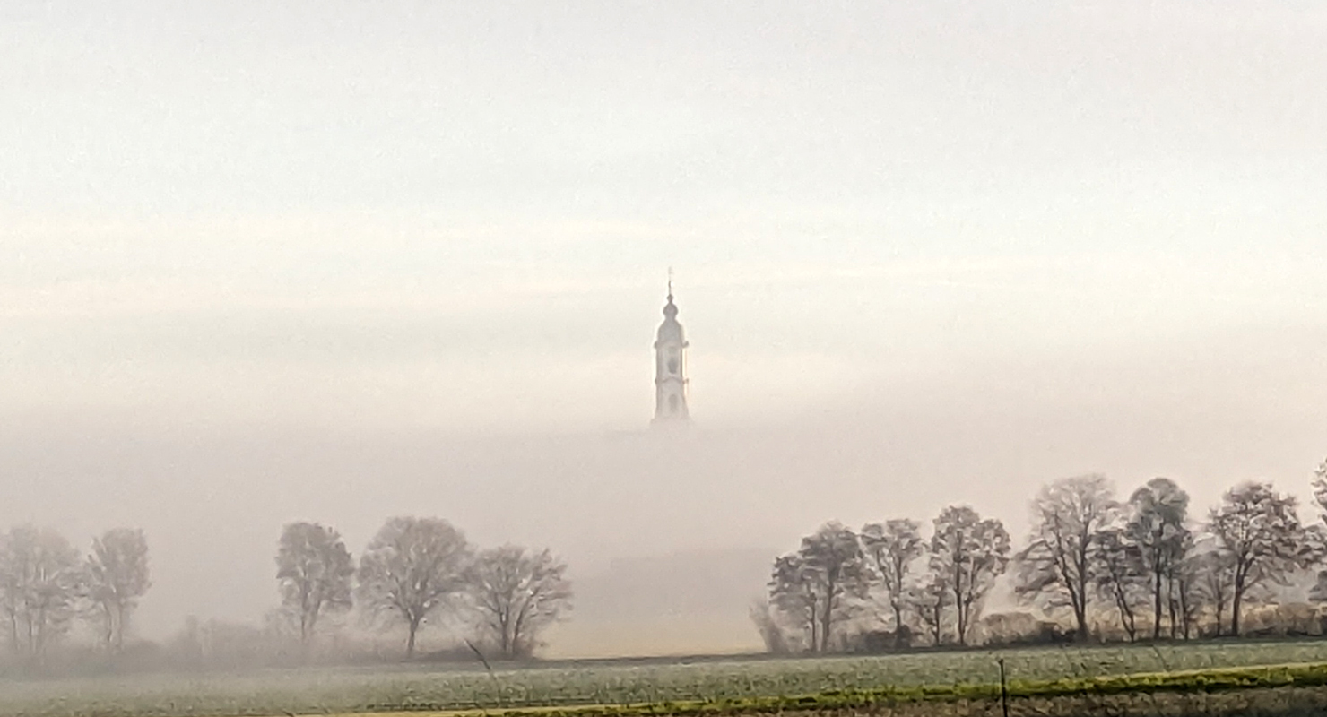 Die Barockkirche Steinhausen im Nebelgrau