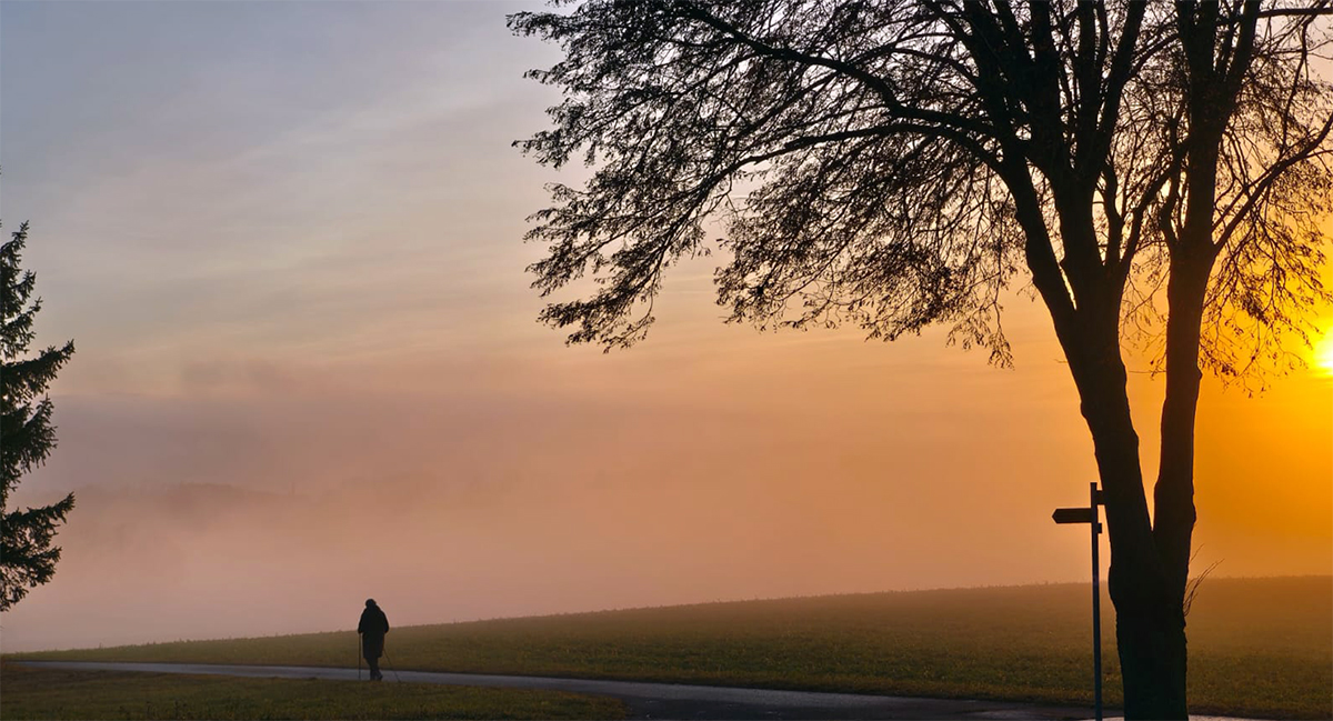 Sonnenstrahlen über dem Donaunebel bei Rottenacker