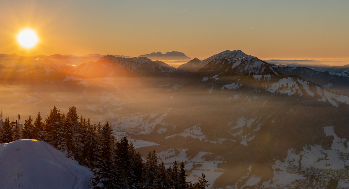 Sonnenuntergang am Grünten mit Blick auf die Allgäuer Alpen