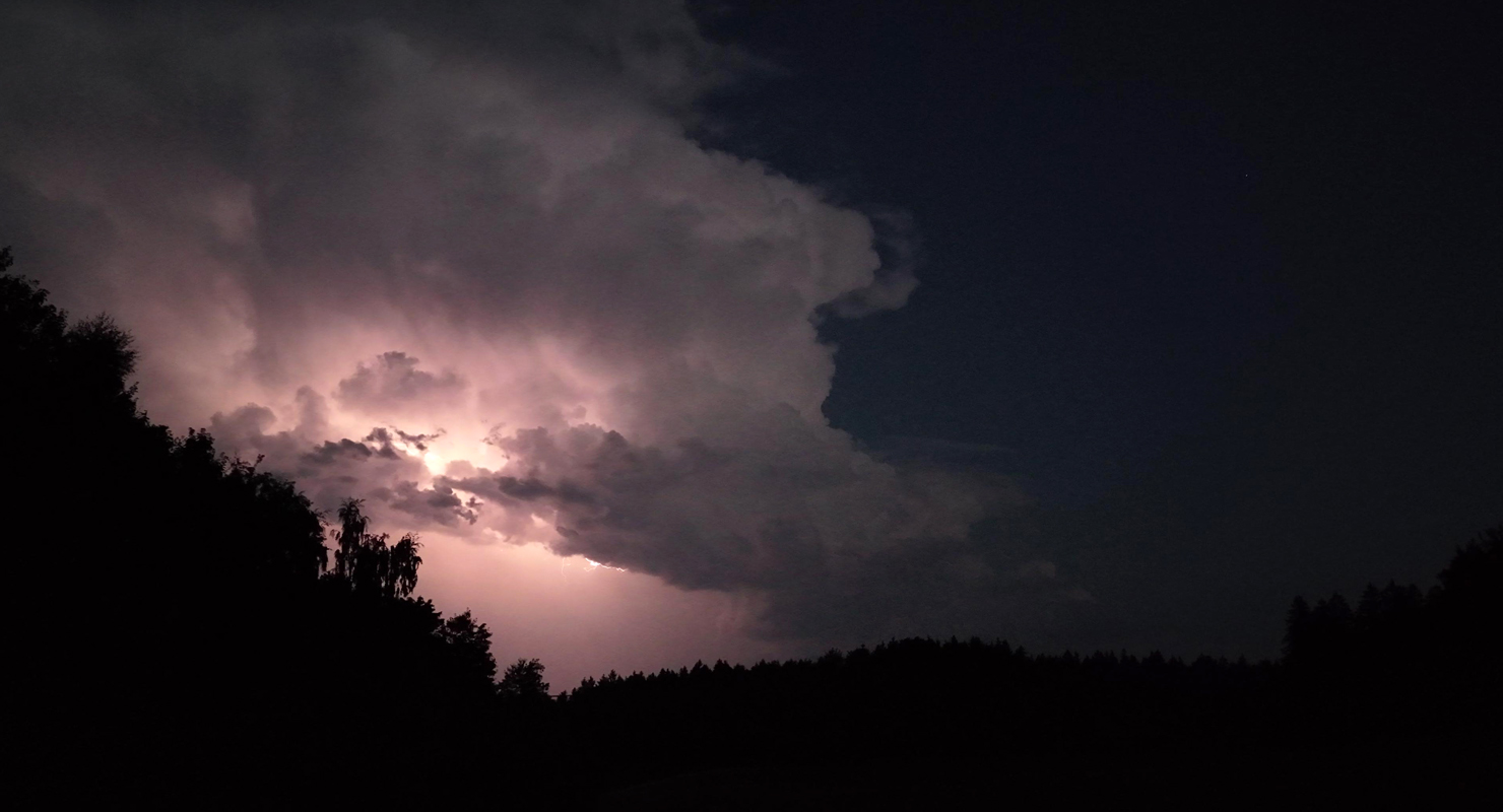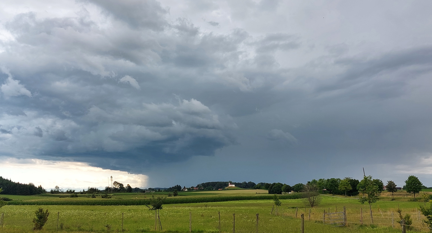 Gewitter bei Waldburg, von Neuurbach aus mit Blick zur Volkertshauser Kapelle