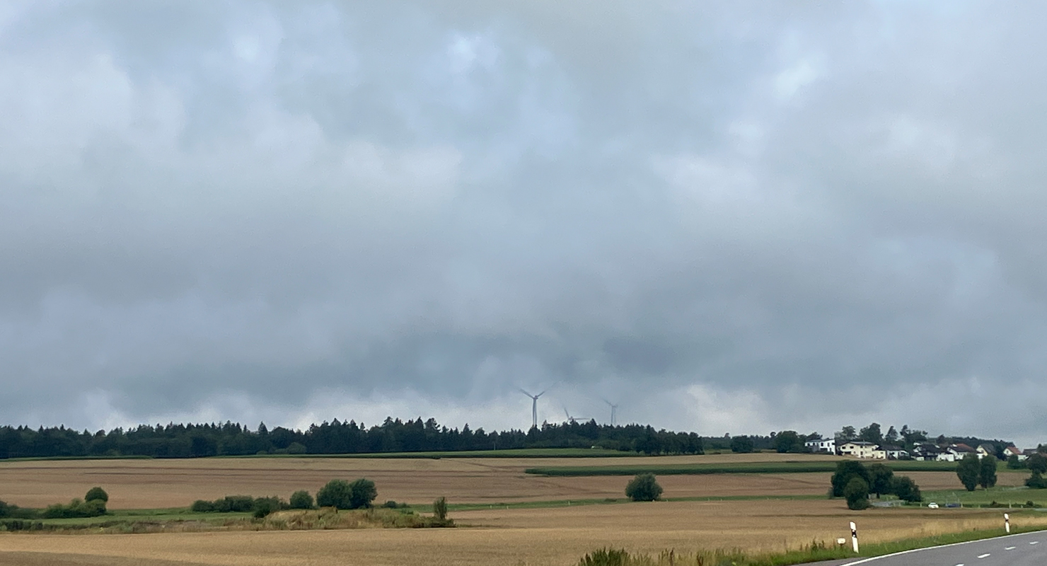 Kurz vor Reichenbach, Blick auf die die Atzenberger Höhe mit den Windrädern bei Braunenweiler