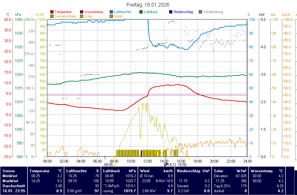 Allmendingen541 m12:30-0,2-1,3 (08:30)0,7 (14:15)0,0 l/m²94%1021,48,0 km/h (2 Bft) O-NO14,5 km/h (3 Bft) O-NO (02:35)