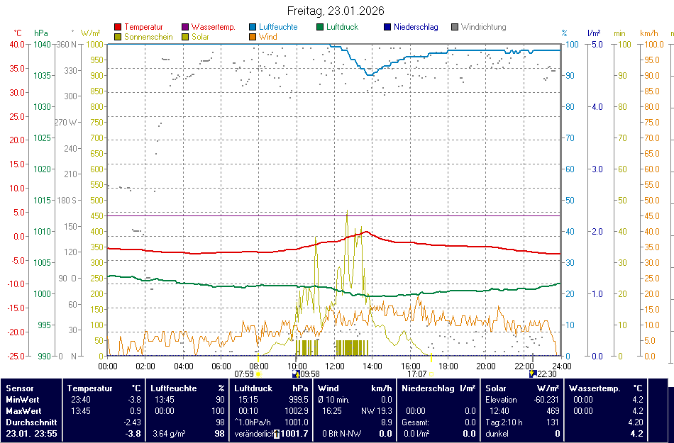 Wangen-Leupolz612 m13:241,5-4,7 (00:10)1,5 (13:23)0,0 l/m²96%1003,09,7 km/h (2 Bft) O-NO16,2 km/h (3 Bft) S-SW (03:06)