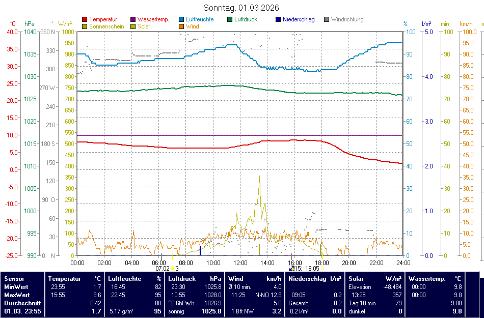 | 01.03.2026 | Höhe ü. NN | Zeit | Temperatur (°C) | Nieder- schlag | Luft- feuchte | Luft- druck | Wind |